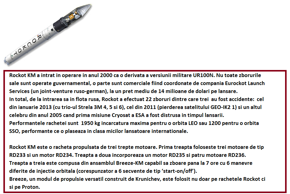 Ca si anul trecut, zborul a fost efectuat de o racheta Rockot KM ce a zburat de la baza spatiala din Plesetsk, la ora 12:43 UTC. Nu mai departe de luna mai, racheta reusise lansarea satelitiilor Strela 3M 10, 11 si 12 – varianta militara a incarcaturii de acum.