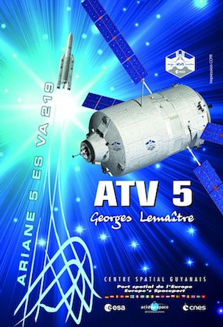 Misiunea ATV 5, purtand numele fizicianului belgian Georges Lemaitre, va andoca la bordul ISS pe 12 august. 7.3 tone de combustibil, rezerve de hrana, oxigen si apa, alte materiale tehnice si echipamente pentru viitoare experimente sunt asteptate sa ajunga pe statia spatiala internationala.