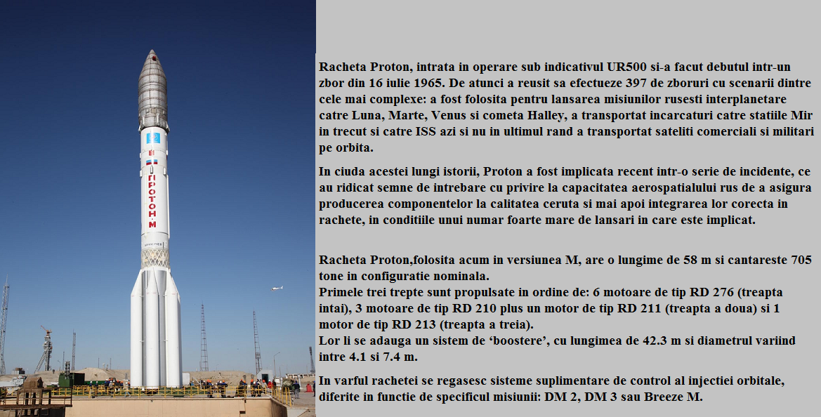 Rusia a lansat sambata 27 septembrie o misiune secreta de la baza spatiala din Baikonur. Conform comunicatului de presa al Roskosmos, incarcat la bordul rachetei Proton M Breeze M s-a aflat satelitul Olimp K1 sau Luch. Numele Luch a fost folosit in trecut pentru sateliti de telecomunicatie civili (data relay satellite), insa de aceasta data pare o acoperire pentru adevarata misiune a satelitului.