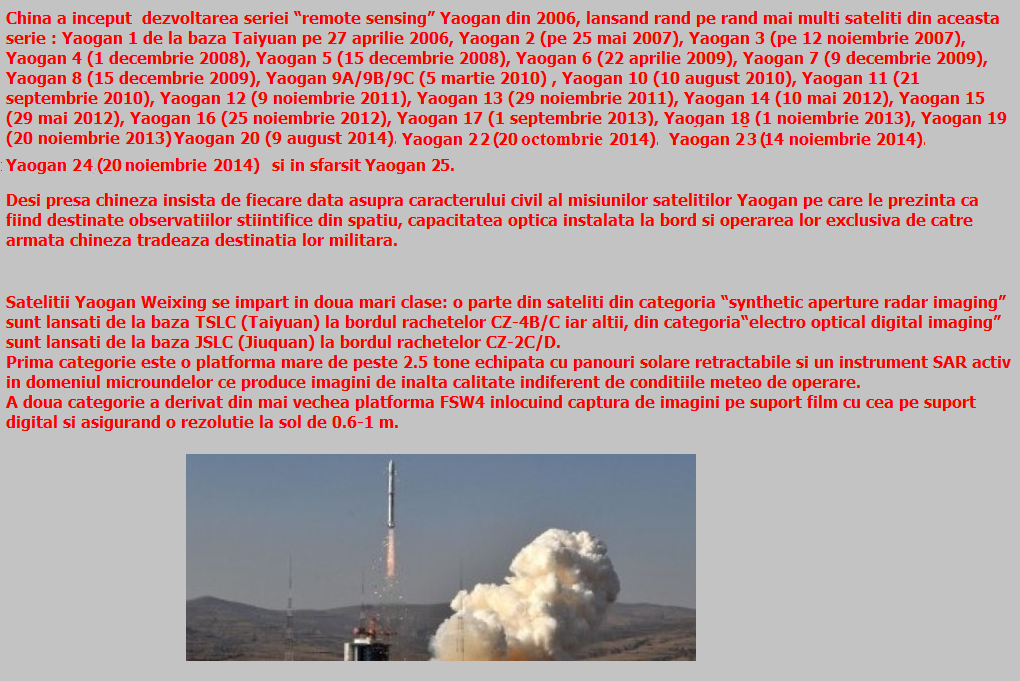 China lanseaza frecvent astfel de sateliti care ii cresc capacitatea de reactie (numai pe anul in curs aceasta este a cincea misiune de acest fel).