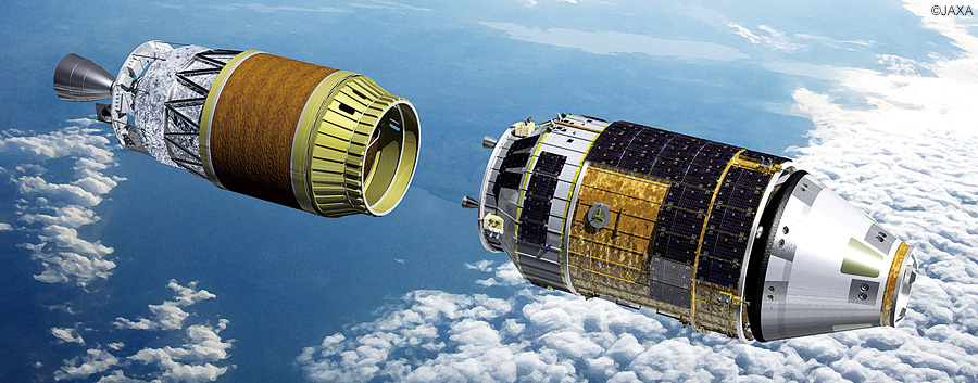 In prim plan cargoul spatial HTV (H-2 Transfer Vehicle sau Kounotori in japoneza), incarcat in varful rachetei nipone H2 B. Lansarea a avut loc la ora preconizata, 11:50 GMT, de la baza Tanegashima Space Center, undeva in sudul Japoniei.