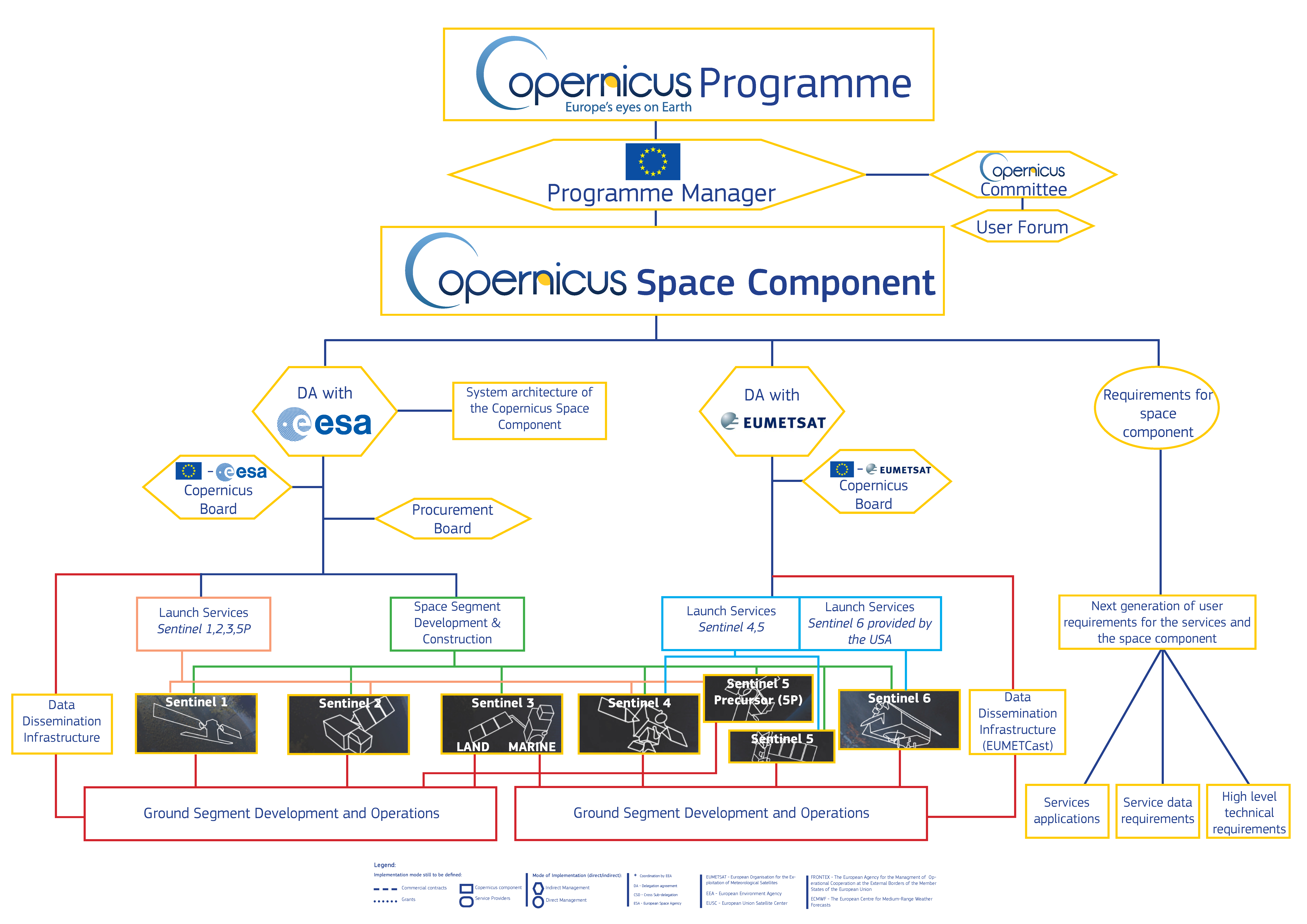 Primul satelit Sentinel, 1A, a fost lansat in aprilie 2014 si de atunci functioneaza fara intrerupere, datele sale fiind folosite cu succes in multe situatii critice (o parte din ele inclusiv in Romania).