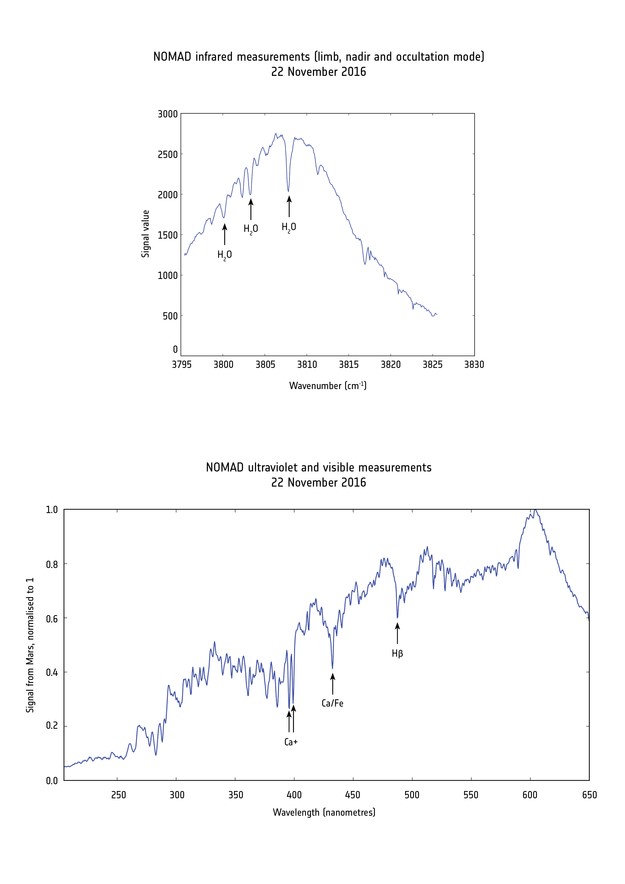 Primele masuratori ale atmosferei martiene realizate pe 22 noiembrie de instrumentul NOMAD