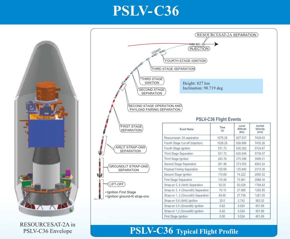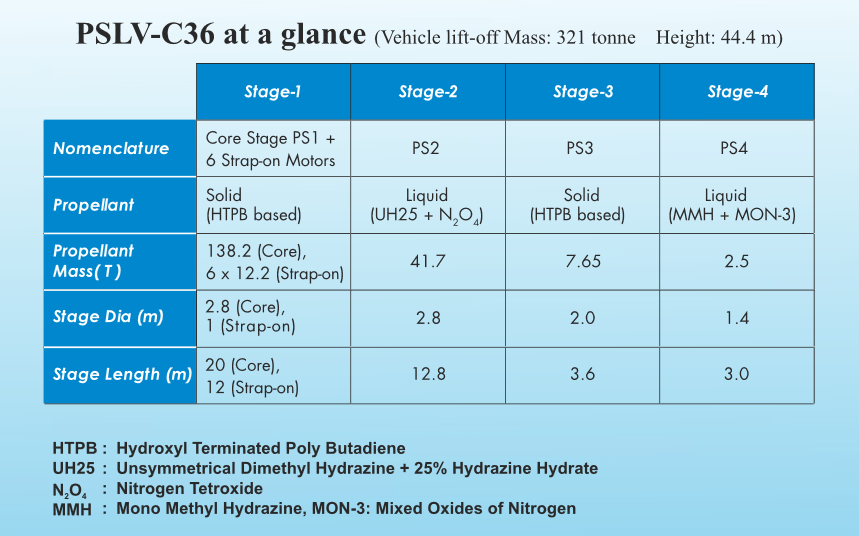 Zborul C36 al rachetei indiene PSLV a avut loc de la Satish Dhawan Space Centre si a folosit versiunea cea mai puternica, XL. In aceste 36 de zboruri ce au avut loc din septembrie 1993 (data de intrare in operare a rachetei) pana in prezent, 121 de sateliti au fost lansati (42 de productie indigena si 79 straini), inregistrandu-se doar doua incidente: la primul zbor (pierderea satelitului IRS 1E) si respectiv la zborul cu numarul patru, cu satelitul IRS 1D.