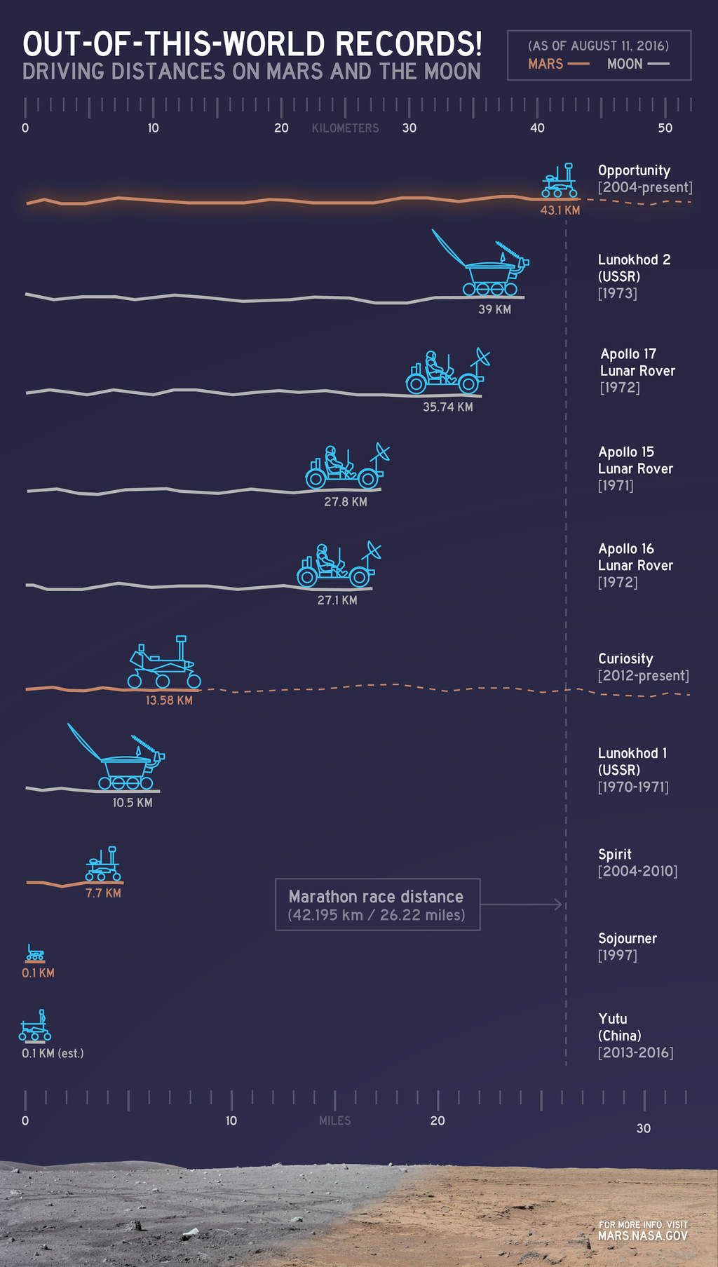 MSL a mai acumulat cativa km, trecand simbolic de borna cu numarul 17, insa este totusi inca departe de distanta strabatuta de Opportunity.