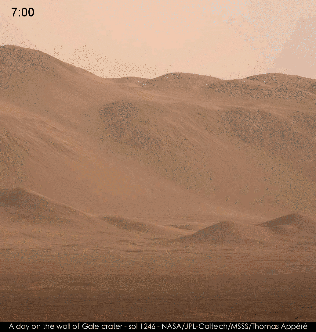 Ziua solara martiana este echivalentul a 24 de ore, 39 de minute si 35.244 secunde terestre, transformand astfel un an martian in 668.5991 sol (zile martiene) sau 686.98 zile terestre. In plus, excentricitatea orbitei planetei, face ca, diferit fata de Pamant, cele patru anotimpuri sa nu aiba aceeasi durata.