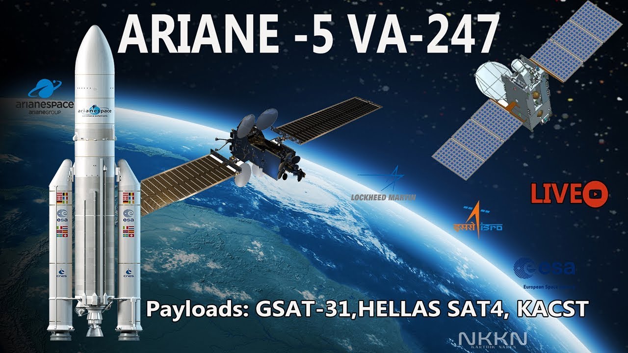 Al doilea pasager, GSAT-31, este o platforma I2K a agentiei spatiale indiene ISRO. Echipat cu transpondere in banda Ku, satelitul va ajunge deasupra Ecuatorului, la 48 de grade longitudine estica.