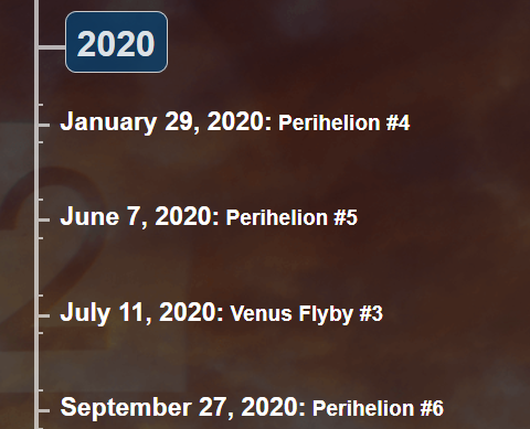 Punctul culminant al acestei traiectorii va fi 29 ianuarie 2020, al patrulea periheliu, ocazie cu care sonda va dobora recordurile stabilite in precedentele trei treceri in vecinatatea Soarelui, apropiindu-se la circa 18.6 milioane de km (adica o distanta cu 20% mai mica decat in trecut).