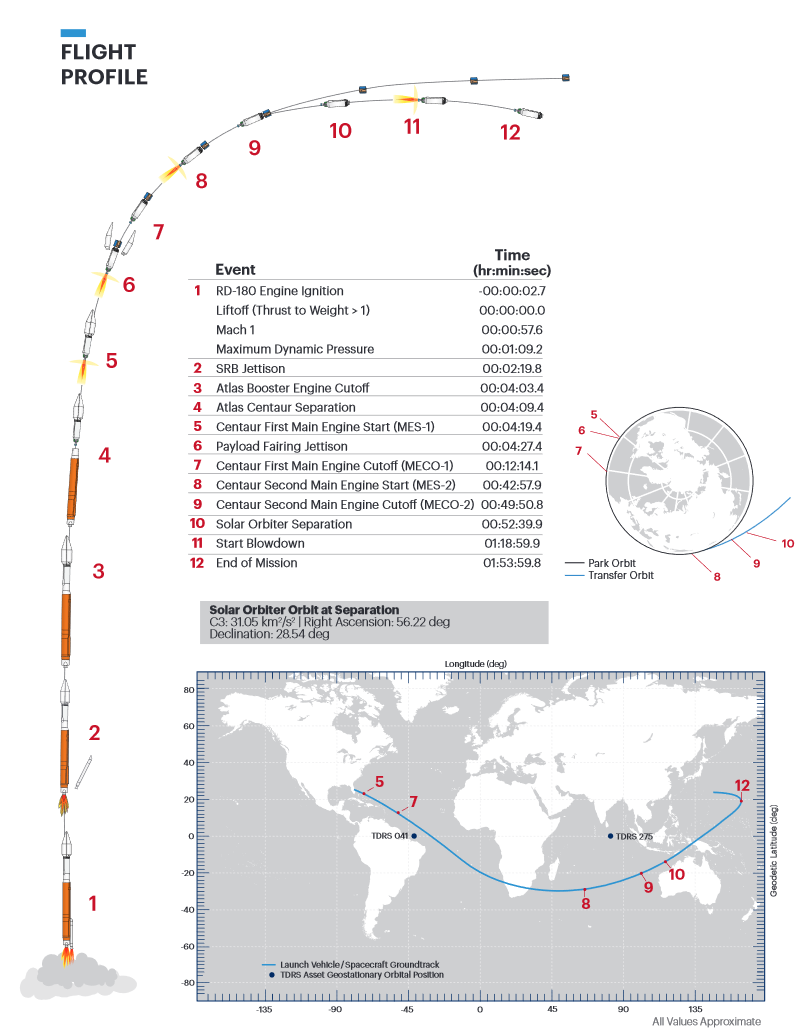A fost vorba despre versiunea 411 a rachetei americane (aceeasi care lansa in 2016 misiunea de vizitare a unui asteroid, OSIRIS-Rex), de doua activari ale treptei Centaur si de 52 de minute de zbor, pentru a imprima sondei viteza necesara parasirii orbitei Pamantului.