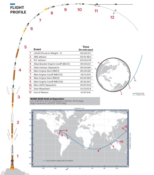 Racheta Atlas 5 a celor de la ULA a fost scoasa pe rampa de lansare a complexului de lansare 41 de la Cape Canaveral. Configuratia folosita a fost 541, tipica pentru traiectorii TMI (Trans Mars Injection).