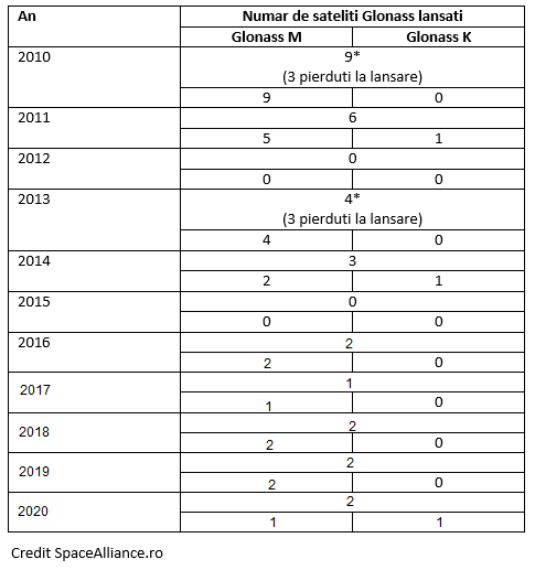 Insa, cel putin pana in acest moment, nu am asistat la o lansare dubla Glonass K pe Soyuz. Probabil ca acest lucru se va intampla atunci cand se va inchide oficial procesul de testare in orbita si cand platformele vor deveni standard (generatie care va fi denumita generic Glonass K2).
