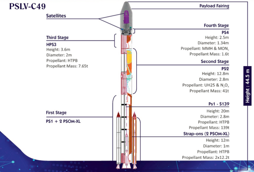 7 noiembrie a marcat reintoarcerea in serviciu a rachetei PSLV. Misiunea C49 a fost cea cu numarul 51 de la debutul Polar Satellite Launch Vehicle din 1993. ISRO a folosit de aceasta data versiunea DL a rachetei (pentru a doua oara in istorie, prima data anul trecut, in 2019).